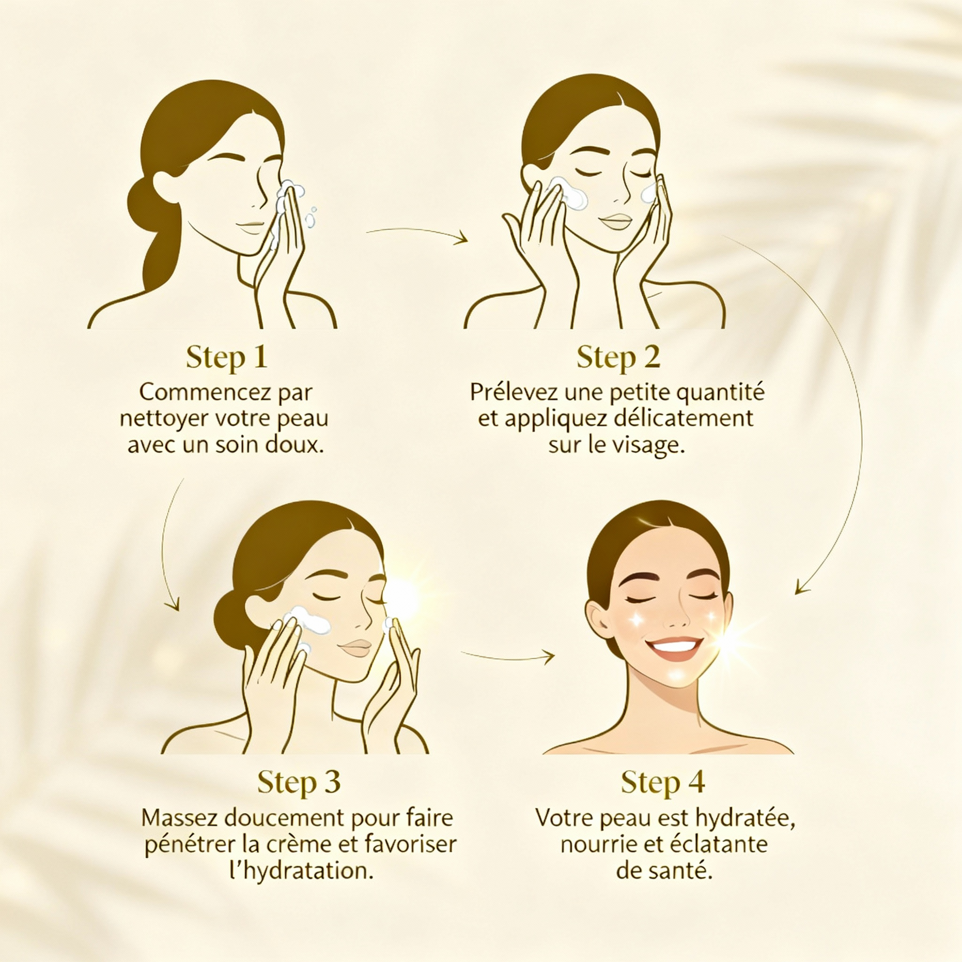 4. Laissez pénétrer quelques secondes. Peut être utilisée seule ou après un sérum.